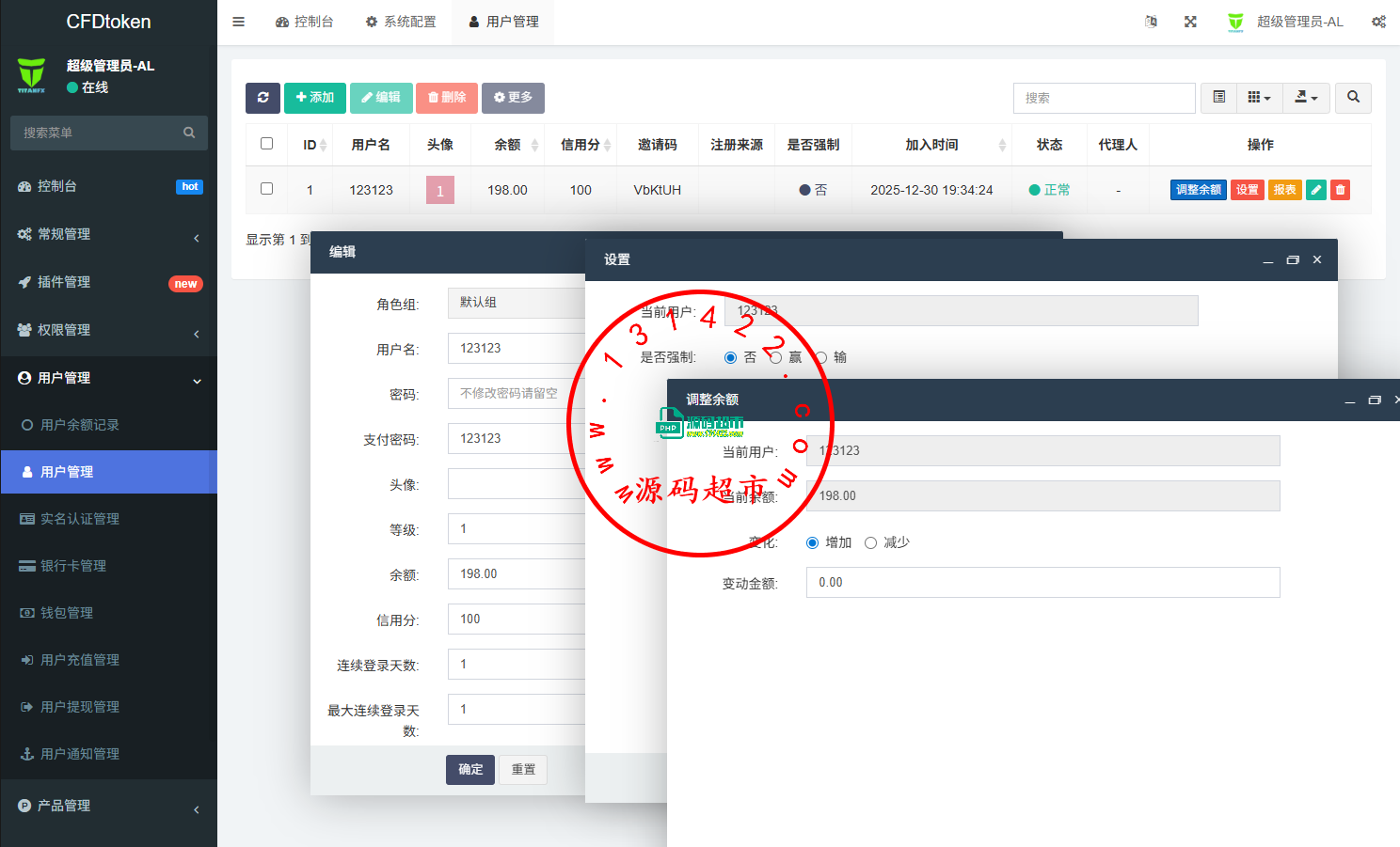 系统功能:信用分,实名认证,银行卡usdt充值提现,用户单控,订单控制等功能