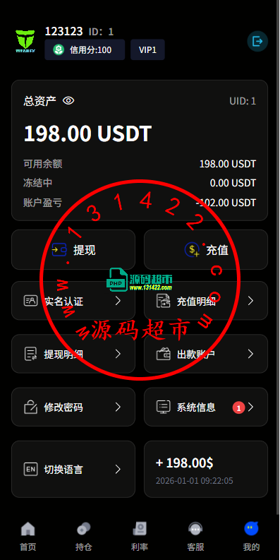 多语言虚拟币微盘系统/秒合约交易/信用分/实名认证插图