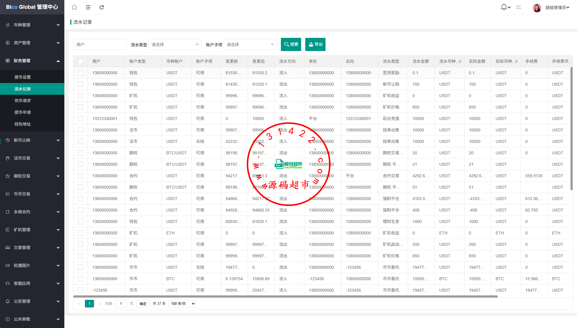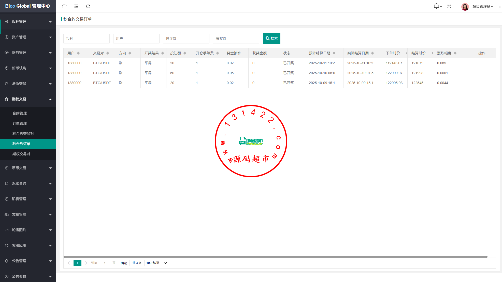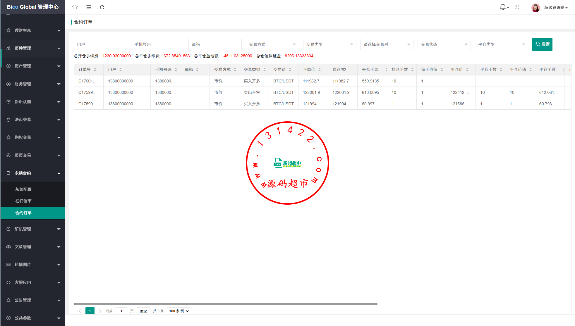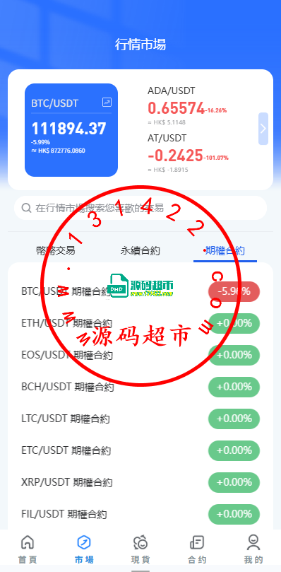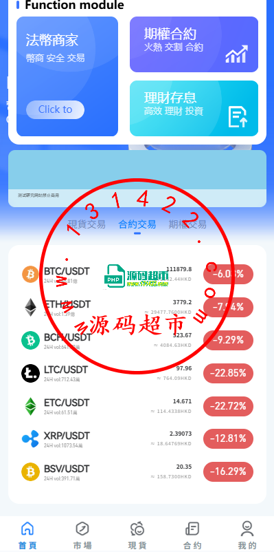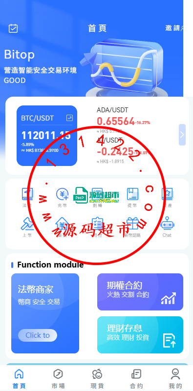 系统功能:永续合约,期权合约,秒合约,平台币,矿机质押,