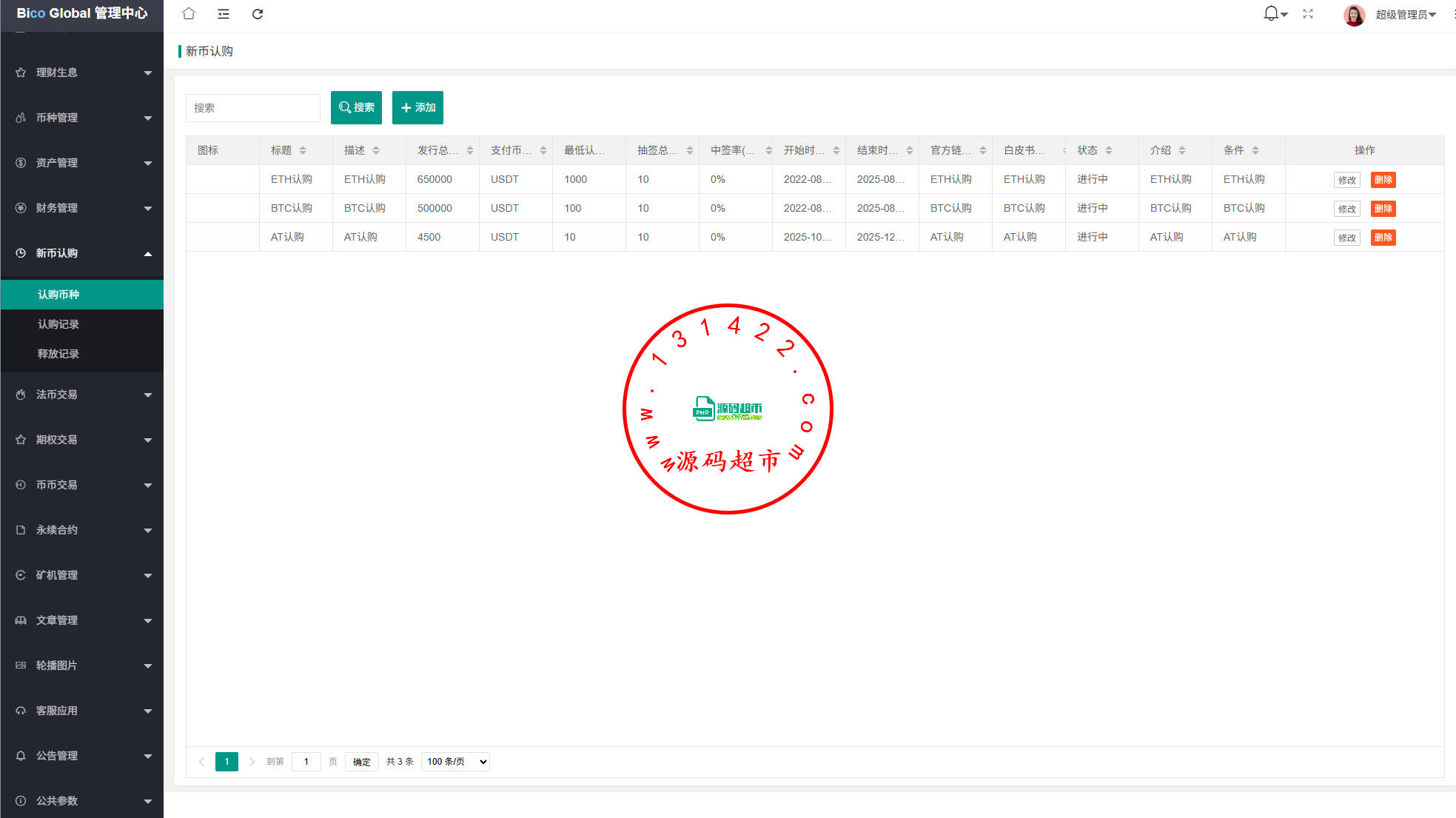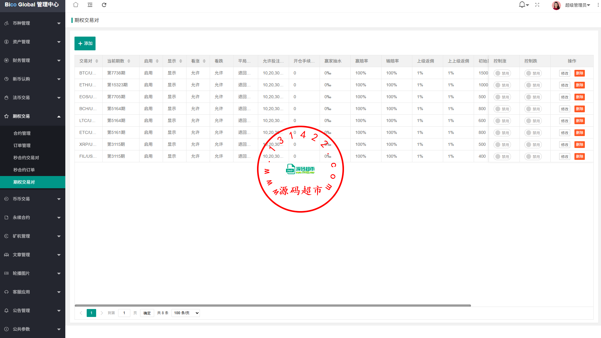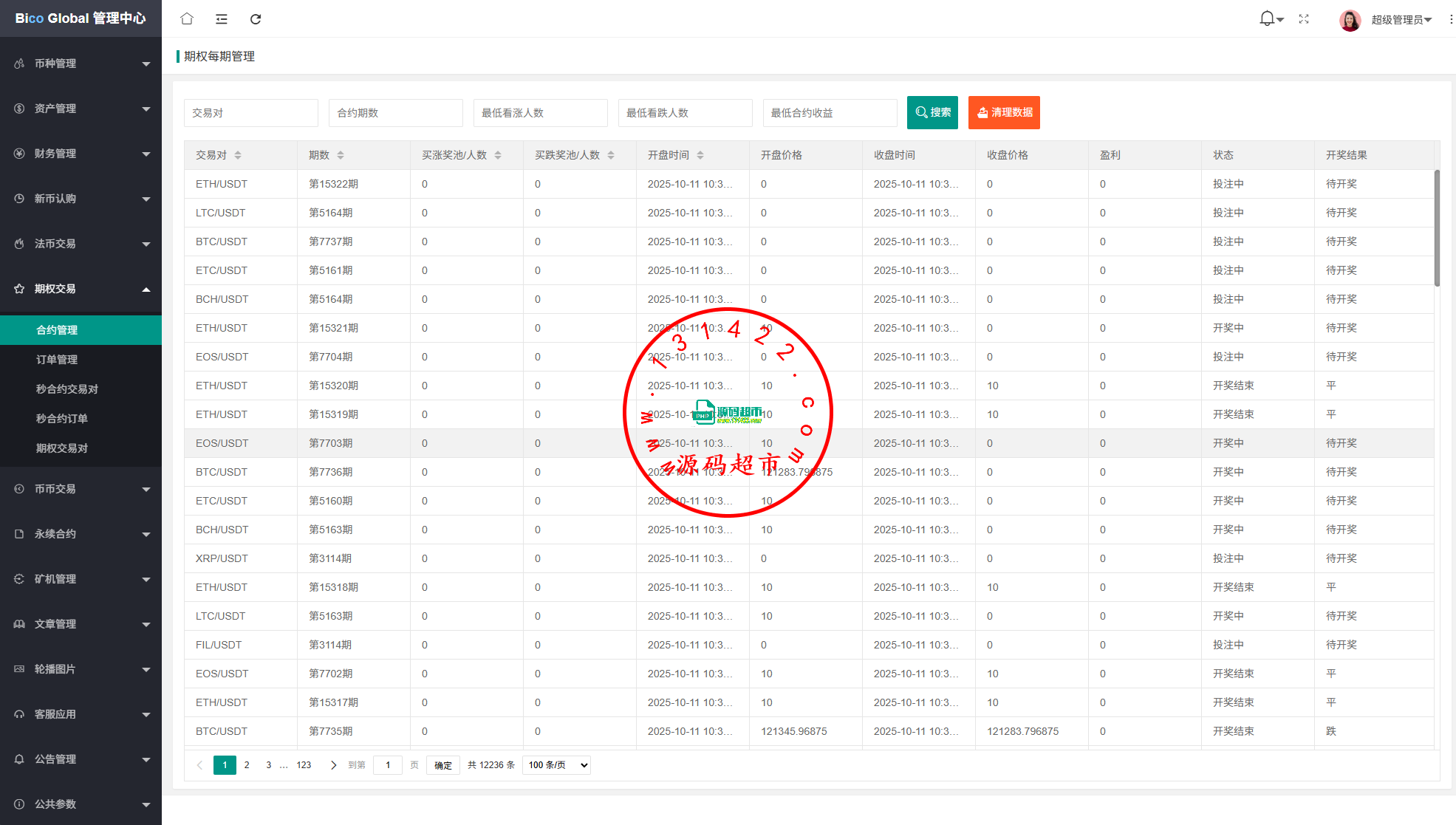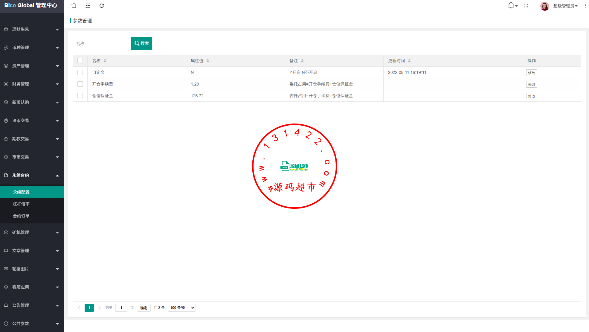 系统功能:永续合约,期权合约,秒合约,平台币,矿机质押,